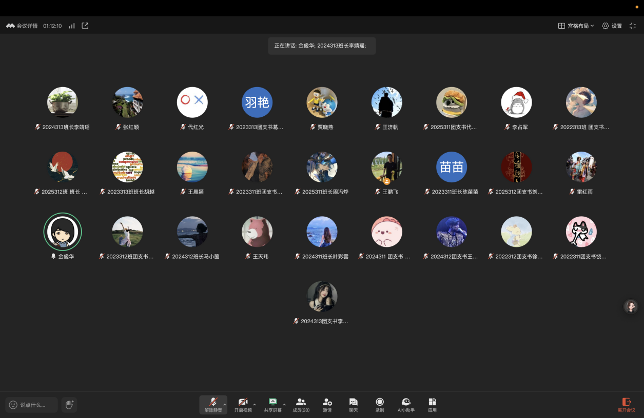 外交学院外语系简报 2025年第36期 ———————————————————————————————————— 半程总结 共谈提升 ——外语系顺利召开2025-2026学年第一学期 期中教学座谈会 2025年11月12日19:00-20:10,外交学院外语系以线上形式顺利召开2025-2026学年第一学期期中教学座谈会,旨在倾听学生心声、优化教学安排,为师生搭建高效沟通桥梁,助力提升教学质量。外语系教学副主任金俊华、法语教研室主任王鹏飞、副主任乐旻、日语教研室主任代红光、副主任李占军、西班牙语教研室主任王晨颖、副主任张红颖、教学秘书雷红雨、科研助理贾晓燕和代理辅导员高春园共10位... …