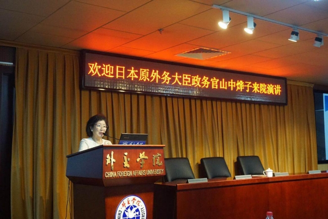 之后,山中烨子教授在我院沙河校区行政楼报告厅,为我院学生举办了题为“展望国际社会中的中日关系”的演讲。