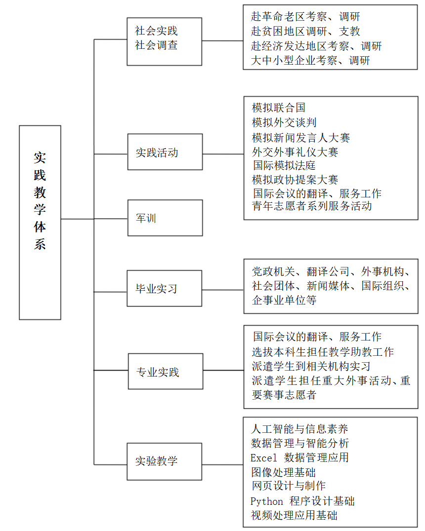 学生根据外交学院本科培养方案学分构成修读相关课程,专业教育课程设置如下: