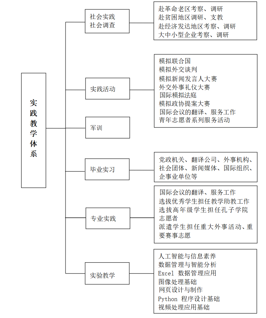 学生根据外交学院本科培养方案学分构成修读相关课程,专业教育课程设置如下: