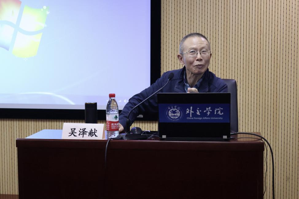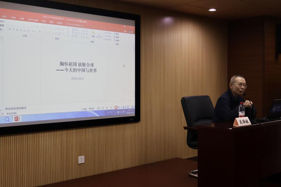 2024年10月9日下午,外语系于沙河校区行政楼4012会议室举办了“胸怀祖国,放眼全球——今日的中国与世界”讲座,本次讲座为外交学院“外交一线”系列讲座第48讲暨外语系区域国别实验班系列讲座第10讲。讲座由吴泽献大使主讲,法语教研室主任王鹏飞老师主持,国际法系罗粒仁老师及来自外交学院、国际关系学院的70余位同学参加了本次讲座。