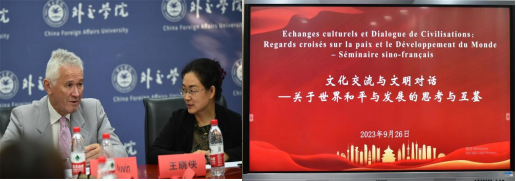 9月26日,欧洲议会法籍议员埃尔维·朱文先生、弗朗丝·雅麦女士一行来访我院并进行学术交流,参加题为 “Échanges Culturels et Dialogue de Civilisations : Regards Croisés sur la Paix et le Développement du Monde”(文化交流与文明对话——关于世界和平与发展的思考与互鉴)的中法学术研讨会。