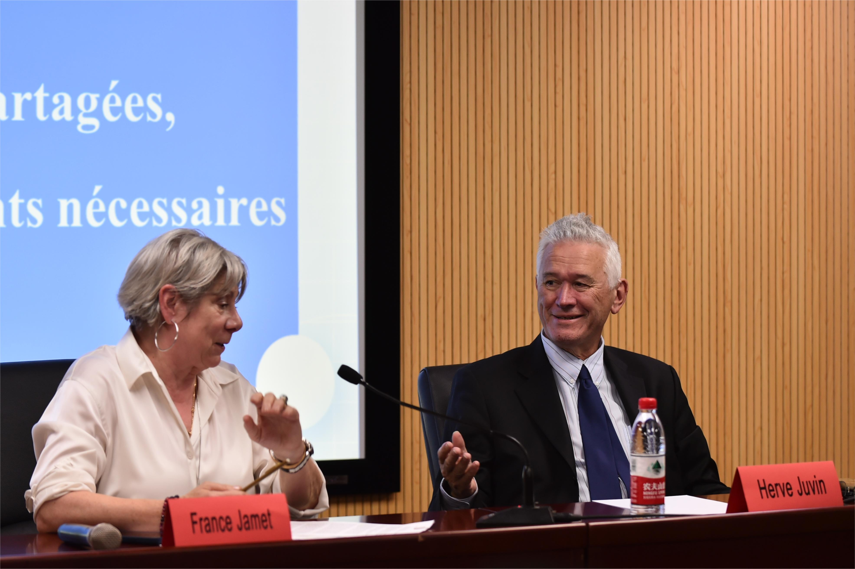 首先,Juvin先生以他之前的访华经历作为开场白,讲述了他曾在1982年首次来到中国去昆明参加研讨会时聆听约20名中国学生合唱La Vie en Rose(玫瑰人生)的经历,引出其讲座主题:他认为人与人之间的情感沟通,外交官之间友好和紧密的个人关系可以缓和国与国之间的外交关系。