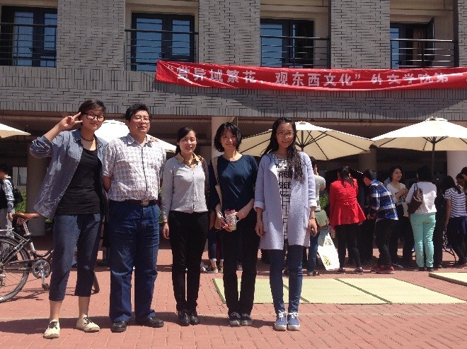 日语教研室李濯凡老师、周萍萍老师、丁曼老师在现场与同学们合影。