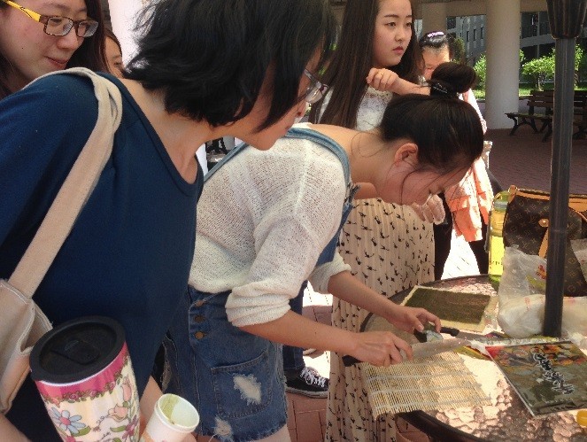 外语系大二日班牟红旋、王雅溶制作美味寿司供同学们品尝。