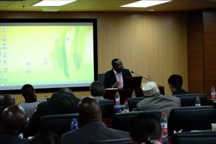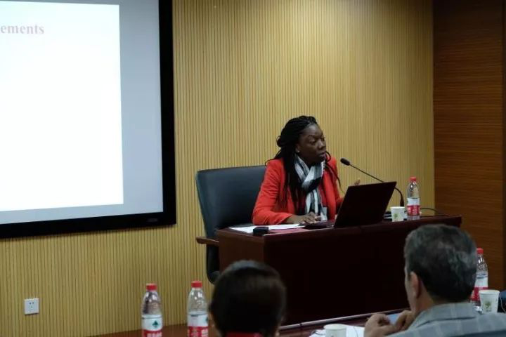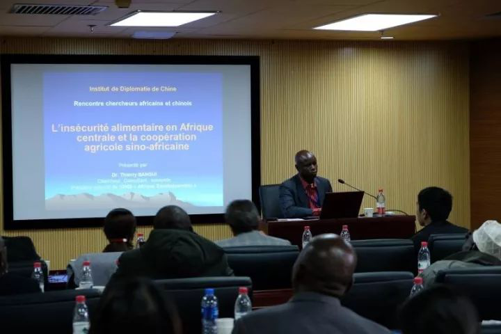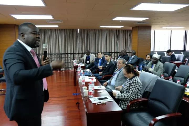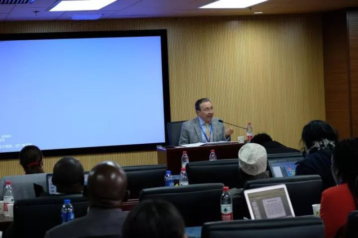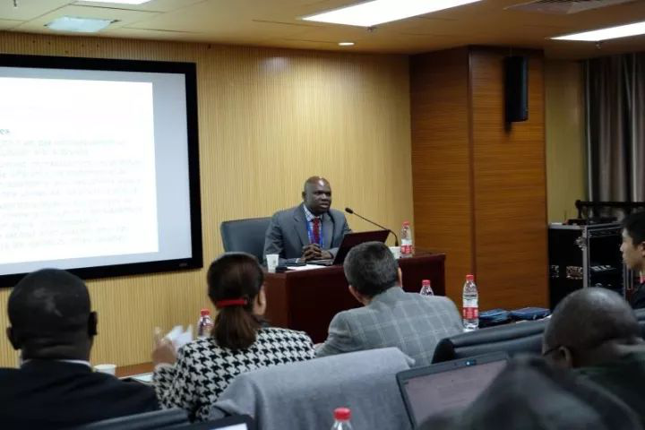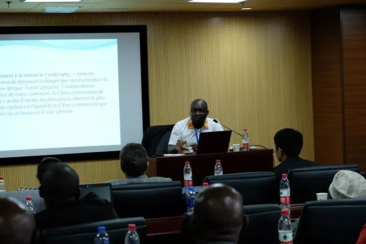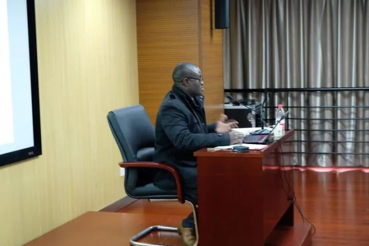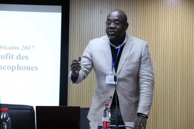 喀麦隆国际关系研究所副所长斯特凡-恩格瓦扎教授作为访华团代表作了答谢发言。他表示衷心感谢中国政府对此次活动的重视与支持,也感谢外交学院及非洲研究中心的热情接待,全体访华团成员都对此次中国之行充满期待,希望通过此类活动促进中非学界间的对话与交流,进一步加深非洲学界对中国,尤其是其在过去五年间所取得的巨大发展成就有更深入的认识和了解。