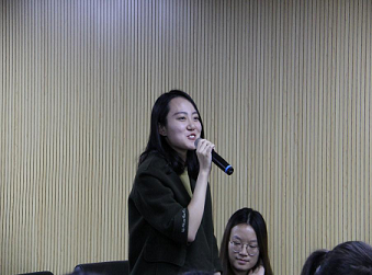 首先,钱晏青副处长向大家介绍了翻译室的历史、处室设置与主要工作。她认为,翻译人员应当像个一杂家,有强烈的求知欲和好奇心,善于联想,触类旁通。紧接着,入部七年、担任过很多重要外交活动翻译的刘迪也与大家分享了她入部后的工作学习经验。她谈到了对自己所从事的这份工作的理解与认识:责任重大,但使命光荣。以服务国家为第一要义,不断熟悉业务,提高专业水平。