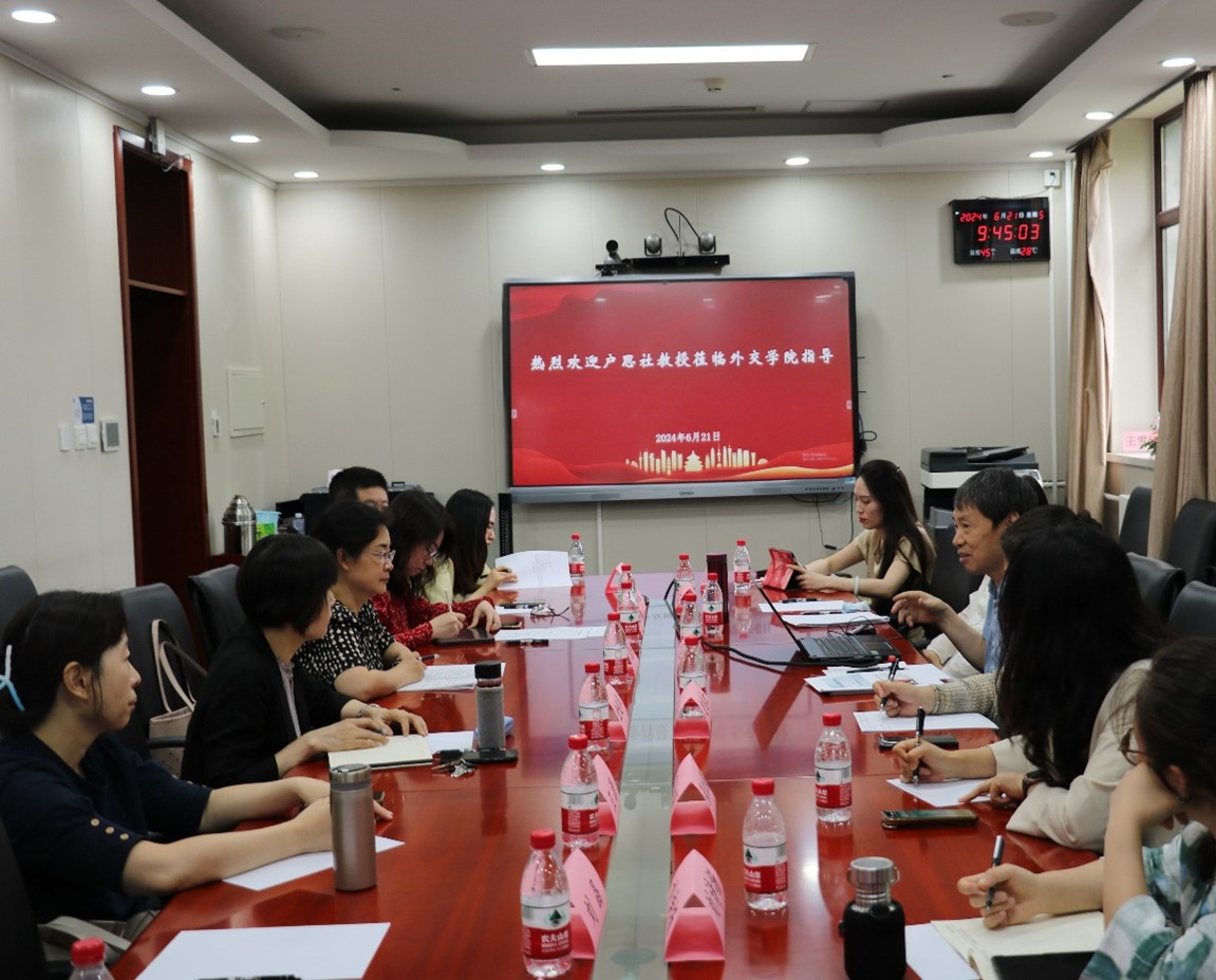 2024年6月21日,外语系邀请了原西安外国语大学校长、原中国人民对外友好协会副会长、国务院政府特殊津贴专家、法兰西共和国金棕榈教育勋章军官爵位获得者、教育部高等学校外语专业教学指导委员会委员、法语分委员会副主任委员、现任第十四届全国政协常委户思社教授来我院举办题为“人工智能背景下的外语专业建设”的讲座。讲座由外语系系主任王晓侠教授主持,外语系法语、日语、西班牙语各专业教师及学生代表参加。