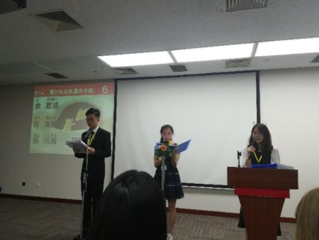 此次大会由北京日本语教师会主办,来自北京语言大学、外交学院、对外经济贸易大学、北外附校、济南外国语学校等全国各大高校的日语专业学生和外国语中学的日语学习者参加了此次比赛,声情并茂地朗读了日语的名篇美文、自创小品和影视作品经典片段。本校的三位参赛者选择了在日本家喻户晓的童话故事,分角色进行了朗读,获得中日评委老师好评,取得“最优秀奖”。朗读结束后,参赛者和日本留学生一起轻松交谈、参加游戏,中日两国的语言学习者们在交流中互相促进,语言和文化上都对对方国家有了更深的了解。