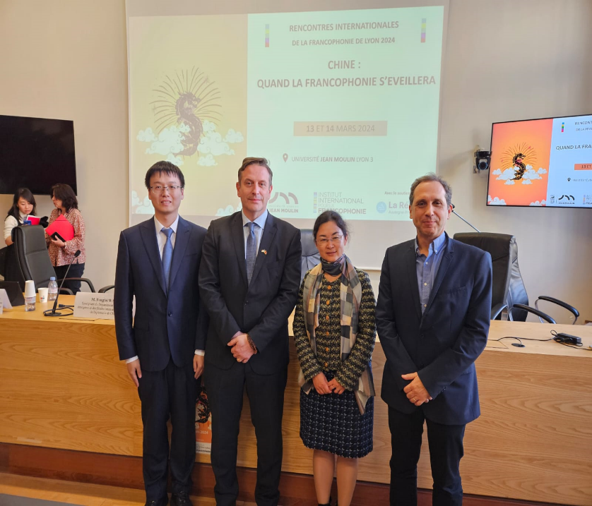 3月13-14日,为庆祝中法建交60周年,同时为配合即将在法国召开的第19届法语国家和地区峰会,法国让·穆兰里昂第三大学法语国家和地区国际研究院及该校国际交流处共同主办了主题为“中国:法语国家和地区觉醒之时”的“2024里昂法语国家和地区国际研讨会”。我院外语系主任王晓侠教授接受里昂第三大学副校长兼法语国家和地区国际研究院院长Manuel JOBERT先生的邀请,携法语教研室教师王鹏飞赴里昂参加此次研讨会。