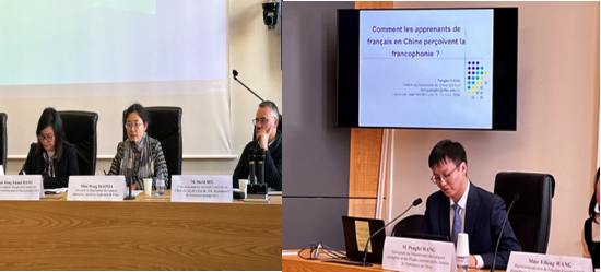 王鹏飞老师作了主题为“中国法语学习者对法语国家和地区的认知”的发言,从语言学习、文化传播和就业前景三个维度,对不同阶段的法语学习者对法语国家和地区的认知侧重进行了介绍,并对如何进一步提升法语国家和地区在中国如何进一步与学习者的实际需求相结合提出建议。随后在互动环节,两位老师分别与来自中国、法国、加拿大等国的学者和参会学生进行了交流。