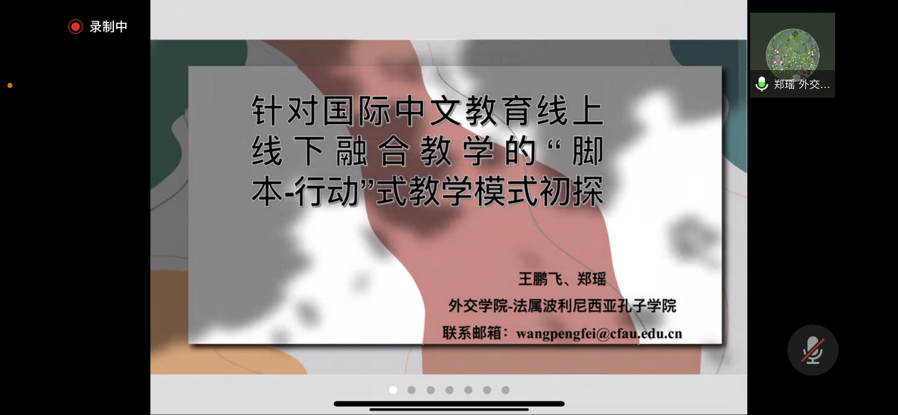 2021年11月20日至21日,第十二届亚太地区国际汉语教学学会年会在线上和线下同步隆重召开。本次会议由亚太地区国际汉语教学学会和上海外国语大学共同主办,我院外语系法语专业教师、外交学院-法属波利尼西亚大学孔子学院中方院长王鹏飞与我院2021级法语专业研究生、法波大学孔院志愿者郑瑶共同受邀参会,并进行论文宣读,王鹏飞老师同时受大会委托,担任其中一场分论坛的主持人。