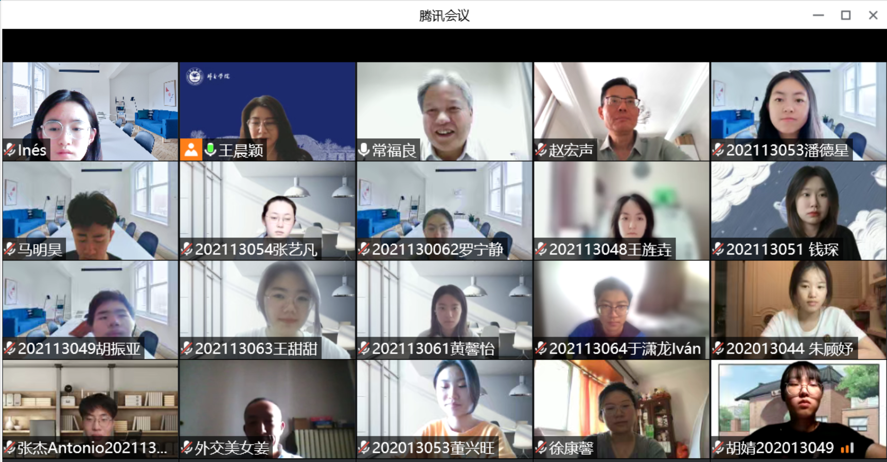 2022年6月8日下午,应外语系西班牙语教研室及西语国家研究中心邀请,北京外国语大学西葡语学院院长、教育部高等学校外国语言文学类专业教学指导委员会西班牙语教学指导分委会主任委员、高等学校西班牙语专业考试专家组专家常福良教授为我院西班牙语专业师生做题为“西班牙语专业人才培养的新阶段、新理念、新方法”的讲座。外语系西班牙语教研室主任王晨颖老师主持讲座,赵宏声大使、西语教研室各位老师以及我院西语专业及其他各系关注西语的学生参加了本次讲座。