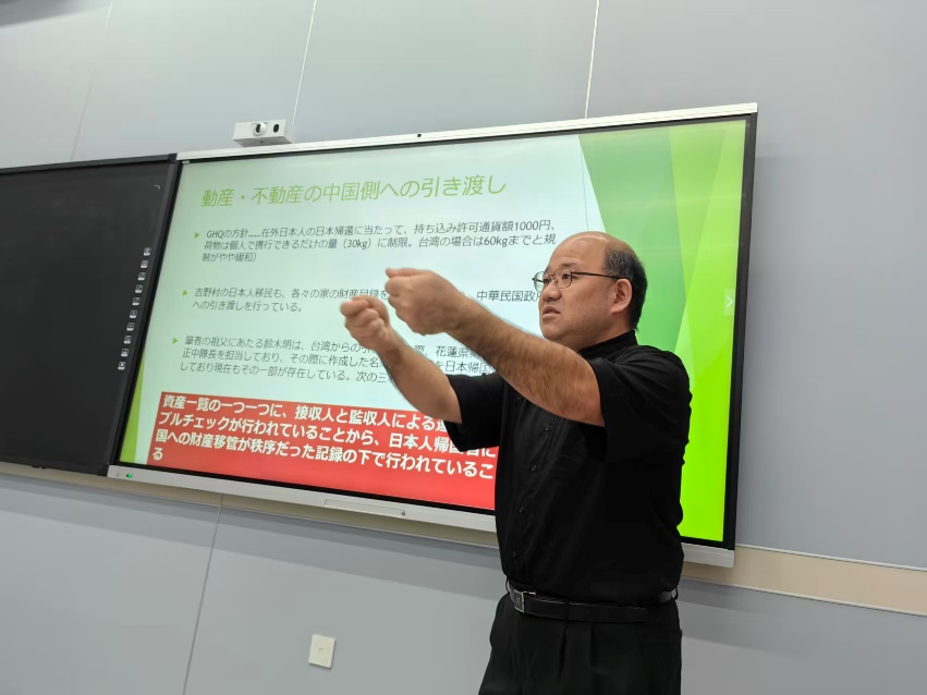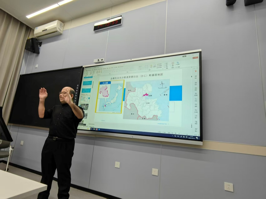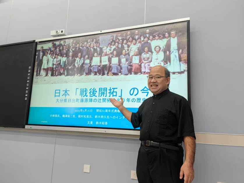 2025年12月19日下午,应日语教研室史兆红教授邀请,外语系日语教研室外教铃木昭吾先生在外交学院沙河校区309教室,为我院2025级日语专业研究生作了题为“日本战后开拓——大分县日出镇藤原地区阵辻村开拓80周年的历史”的学术讲座。讲座由史兆红教授主持,2025级日语专业和日语口译专业研究生到场聆听。