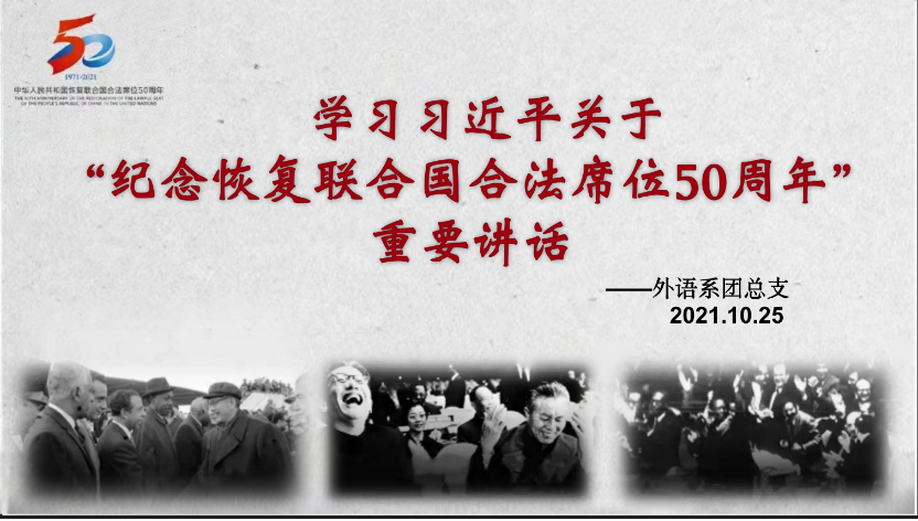 外交学院外语系学子热切关注习近平重要讲话的内容。会议结束后,外语系团总支组织各班团支部线上讨论学习了国家主席习近平的重要讲话。在各班团支书的带领下,外语学子通过主题团会以及线上学习,共同回顾新中国恢复联合国合法席位的艰辛过往,感受中华儿女为实现民族复兴的伟大精神。