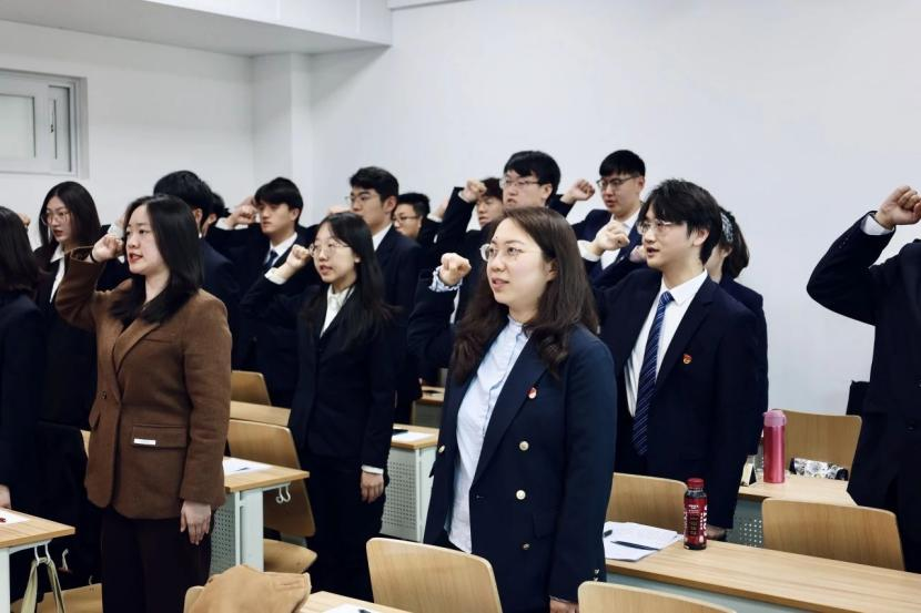 最后,全体党员重温入党誓词。在铿锵有力的入党誓词中,全体党员表达了对党的忠诚,勇担时代青年使命的决心。