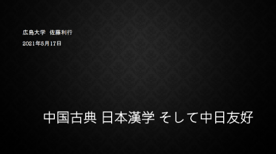 2021年5月17日(周一)下午,外语系日语教研室和日本研究中心邀请日本广岛大学副校长佐藤利行教授,为我院日语语言文学和日语口译专业2020级研究生以及日语本科三年级的同学们举办了一场题为“中国古典・日本汉学・中日友好”的线上讲座。
